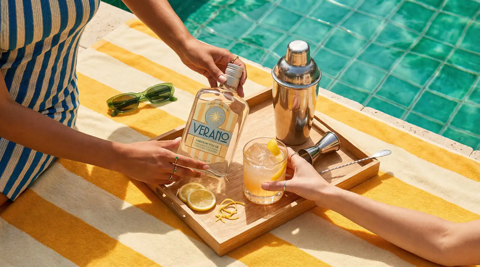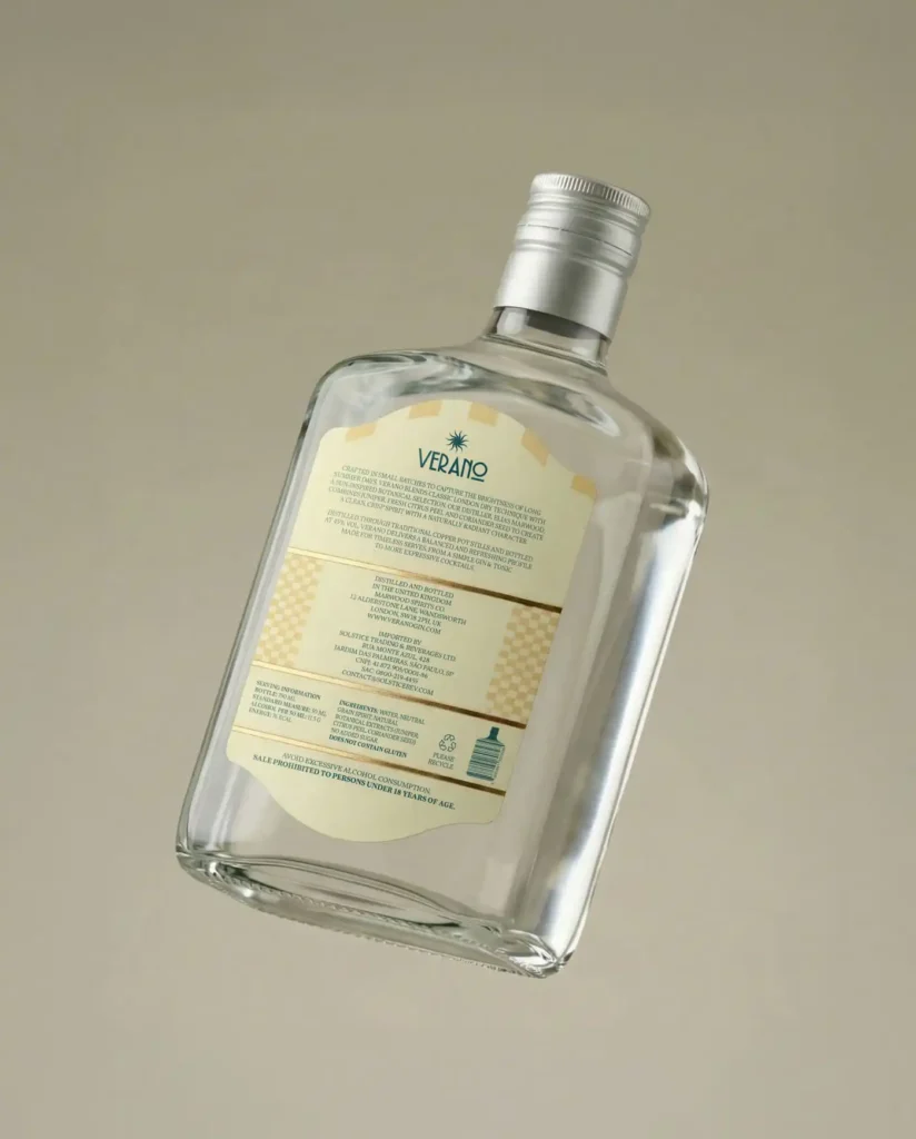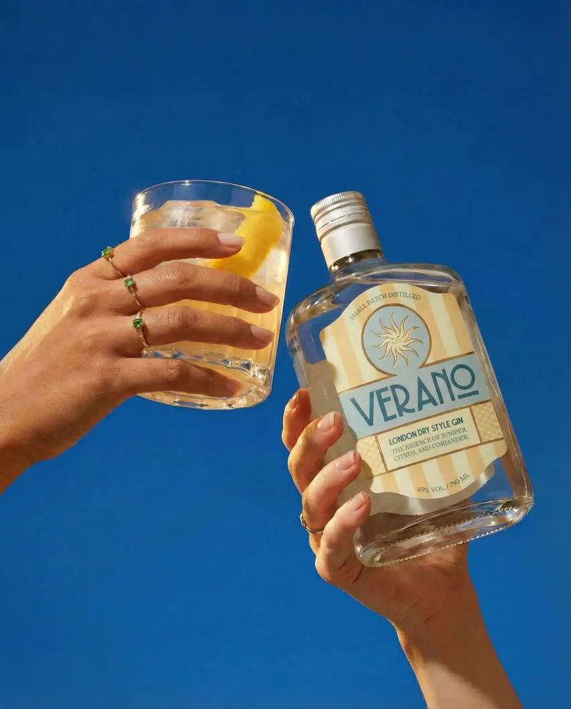Verano Gin is born from the idea that summer is a state of mind, not just a season. The brand proposes a slower, more sensorial and contemplative summer, designed for a young adult, urban and creative audience that engages with design, photography, fashion and visual culture, and values well-curated experiences, simple rituals and objects with intention. In a market saturated with technical narratives and repetitive codes of sophistication, the main challenge of the project was translating this atmosphere of calm, light and presence into a label that could stand out without relying on excess.